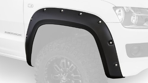 With their recessed stainless steel bolts and massive presence, Pocket Style fender flares are a Bushwacker original and an off-road icon. They're custom-designed for your Volkswagen Amarok to complement oversized tires and high-clearance lift kits. You can mount them right out of the box, with their tough, OEM-style matte black finish - they're UV protected so they won't chalk. Or, paint them to match or accent the body color, for a factory-custom look. Pocket Style fender flares are made in the USA from thick, warp-resistant Dura-Flex 2000 material, tailor-made for added durability and flexibility on the trail. Despite their hard-core bolt-on styling, Pocket Style fender flares install easily, with no drilling required. When you need maximum tire coverage with minimum time and effort, it's in the pocket.